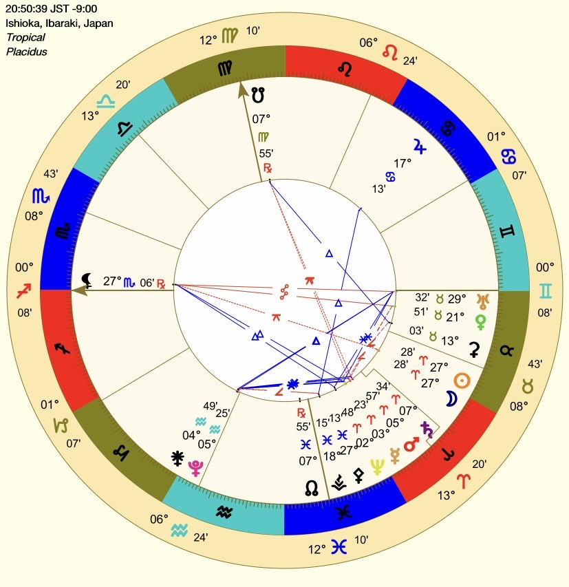 心の根っこ、つまりあなたの居場所や家族を示す4ハウスには、情熱の火星、現実の土星、思考の水星、そして無意識の海王星が、ぎゅっと密集しています。そこに「破壊と再生」の冥王星が、火星に強烈なパワーを送り込んでいます。そして、この「足元の徹底浄化」を経て初めて、太陽と月が5ハウスで「さあ、自由に自分を表現しなさい!」と光を放ちます。