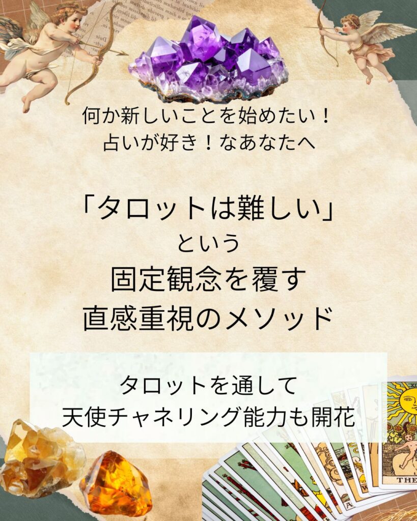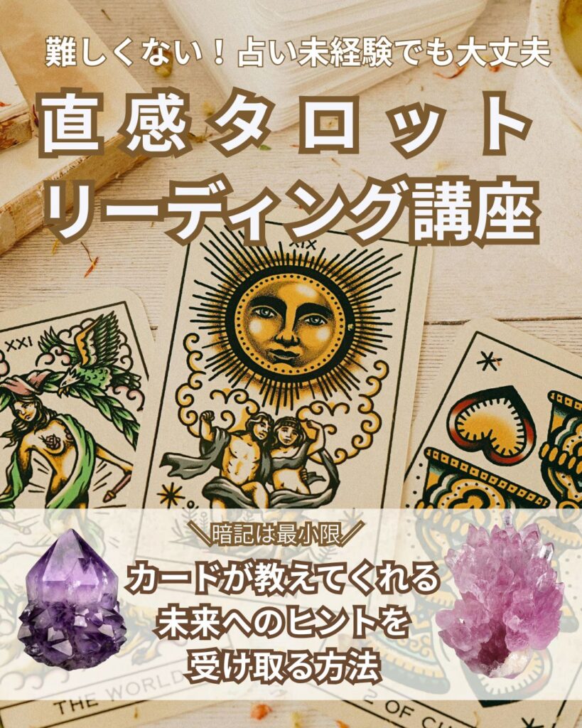 - ヘキサグラムスプレッドを学び、多角的なセルフリーディング&恋愛リーディング直感を深める。