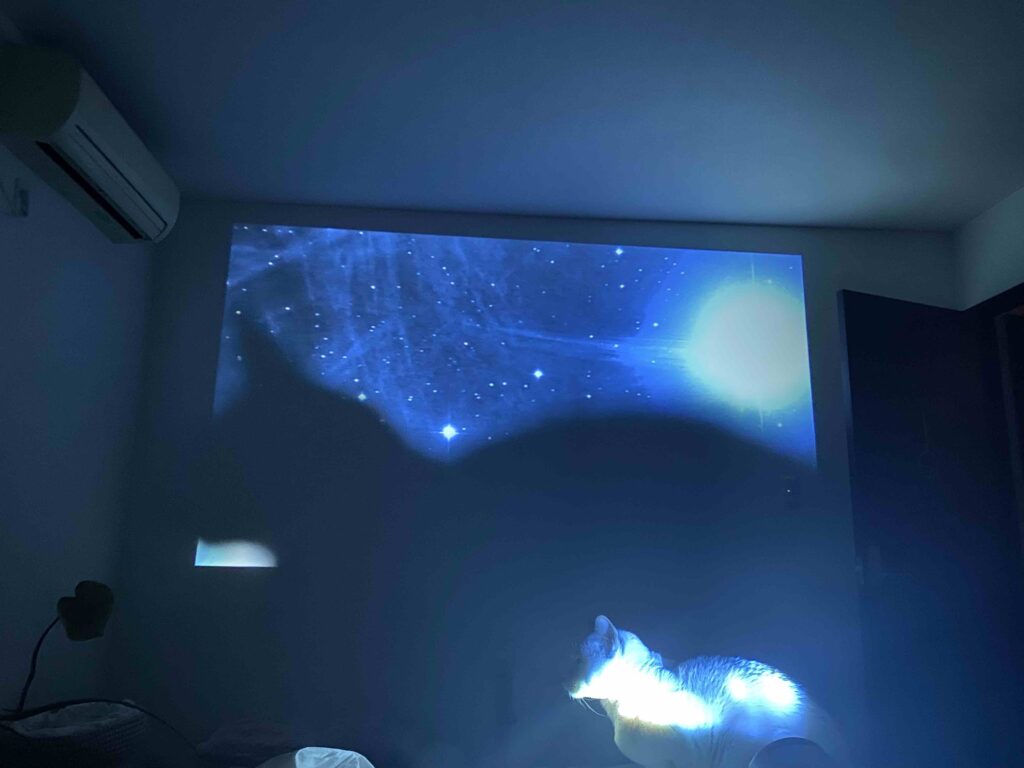 そこから格安プロジェクターを調べて急いで手配し、ブツが届いたのは前日の夜22時。 PCは得意だけど機械音痴な私、初プロジェクターに手こずったり、なんだかんだで、気づけば深夜3時! 「ええい、徹夜だ!」と覚悟を決めたのに、30分後には寝ていたのだけど(笑)